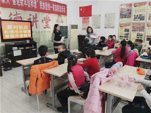 寒假来临,学校放假了,社区却“开学”了。为加强未成年人教育管理工作,新河社区内开办了“红领巾”小课堂。阿依古力·吾守尔是这个“红领巾”小课堂中“寒假外语辅导班”的授课老师,她是新河社区的服务基层干部,同时也是一位英语教师。每周二、周四的上午,阿依古力·吾守尔为60多个小学生们教授英语课程,对于孩子们发音不准确、书写不规范等问题,她都一一耐心指正。