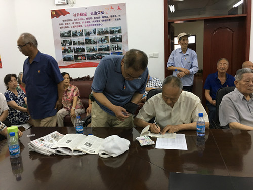站领导带领广大退休党员学习了《党章》规定的党员的权利和义务。大家围绕主题展开讨论,结合自己的工作和生活实际,畅谈了自己对党的认识,并就如何发挥党员作用和开展好支部今后的工作建言献策。大家纷纷表示,作为党员,要有党员意识,今后要积极参加组织生活,主动向党支部交纳党费,履行好党员的义务,发挥好党员模范带头作用,用自己的实际行动支持社区“访惠聚”驻村工作。