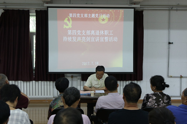 ﹙通讯员:黄凤麟﹚7月18日上午,市委老干部局第四党支部在市机关退休站三楼多功能会议室,隆重举行离退休党员“强党性、正当风、做合格党员”主题党日活动。