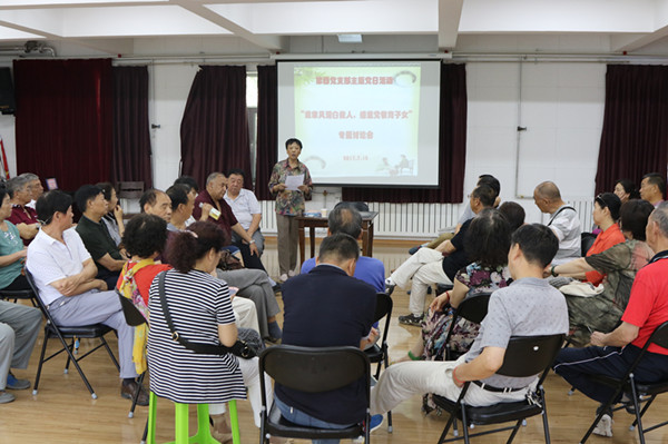 在“重家风清白做人、感恩党教育子女”主题讨论会上离退休党员争先恐后发言,谈起自己的幸福生活和子女的进步对未来充满希望、谈到十八大以来的变化,大家有说不完的话,良好的生活环境、优质的社会服务、众多的惠民政策,让离退休职工感受到了党和政府的关心和厚爱。当前,我国主要经济指标年年增速,稳中向好,社会和谐稳定大趋势大家称好。每个说着聊着的发言者赢得了与会党员一阵阵掌声。大家心情激动起来,一致感叹说:我们赶上好时代,我们要以实际行动感恩党,党员自觉发挥正能量,积极参与每周一升国旗仪式、担任楼栋长、巡逻安保等工作,在社区发挥红细胞作用。