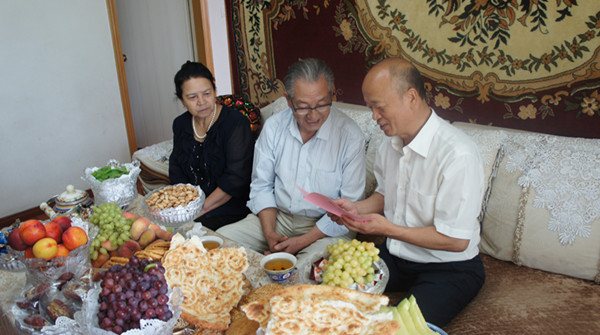 “古尔邦节”是穆斯林群众一年一次的盛大节日,在这充满喜庆祥和的节日氛围里,市委老干部局党员领导干部向少数民族离退休老同志送上了节日的问候和美好的祝福。8月25日至8月30日,市委组织部副部长、市委老干部局局长木塔力甫·克力木和市委老干部局副局长陶胜利两位领导兵分两路,分别走访慰问了少数民族离退休老领导、老干部29人。