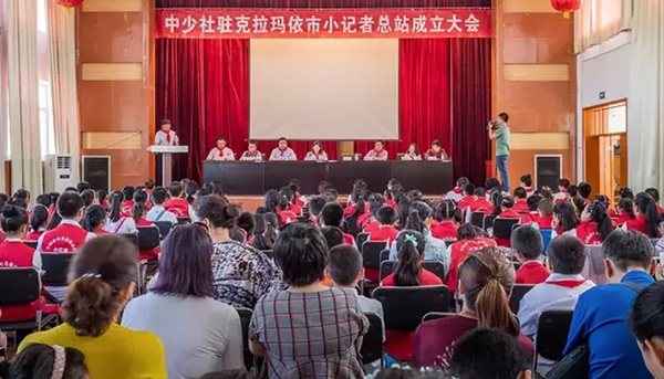 6月5日,中少社驻克拉玛依市小记者总站成立大会在市青年宫隆重举行。全国少工委委员,《中国少年儿童》杂志主编邱琳、市教育局副局长俞慧平、市油田团委副书记张勇、广播电视中心总编室主任强新刚、克拉玛依日报社总编社长办公室主任李翔受邀出席,20名学校大队辅导员及从全市选出的180位申报加入小记者站的少先队员参加了此次活动。市少工委副主任、市教育局团委书记肖军主持会议。