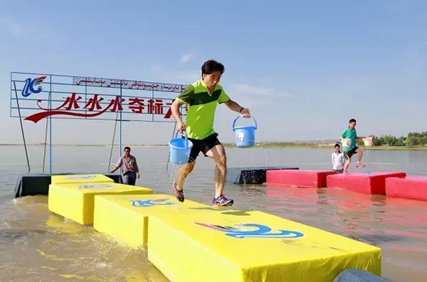 8月6日上午,市油田团委承办的克拉玛依市第十七届水节之“水水水”夺标大赛在阿依库勒水库金沙滩举行。来自全市43家单位的800余名青年齐聚阿依库勒水库,共度这一水上盛会。