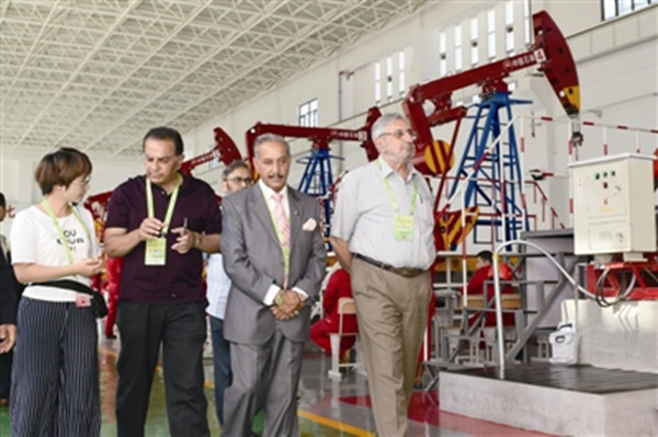 随后,嘉宾还走访了基地的采油鉴定实训厂房。