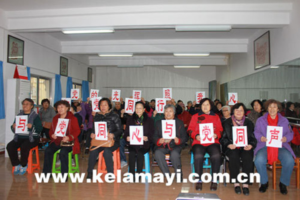 “与党同行”活动中,工作组组织社区党员、居民到市档案局爱国主义教育基地参观,回顾中国共产党的发展历程和油城建设史;组织退休老党员、楼栋长、单元长学习党的十八届六中全会、自治区第九次党代会和克拉玛依市第十一次党代会精神。