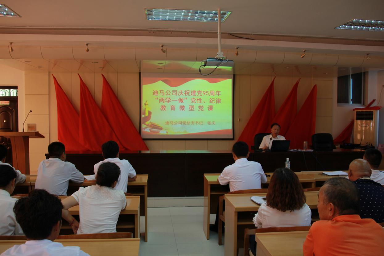 (通讯员张庆、张永莲)为纪念中国共产党诞辰95周年,迪马公司党总支于6月29日下午,在该公司三楼会议室举行活动,热烈庆祝中国共产党成立95周年,并就“两学一做”党性主题教育和自治区“纪律教育年”活动作宣贯和动员。公司全体党员、入党积极分等参加了庆祝活动,庆祝活动由公司党总支书记张庆主持,他代表公司党总支,向奋战在公司各岗位工作的全体共产党员表示亲切的慰问和致以节日的祝贺。