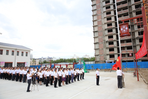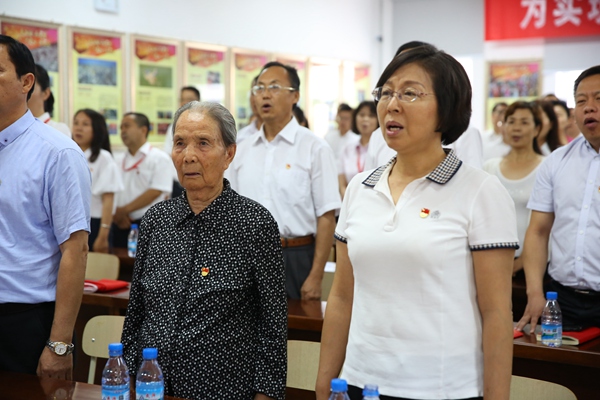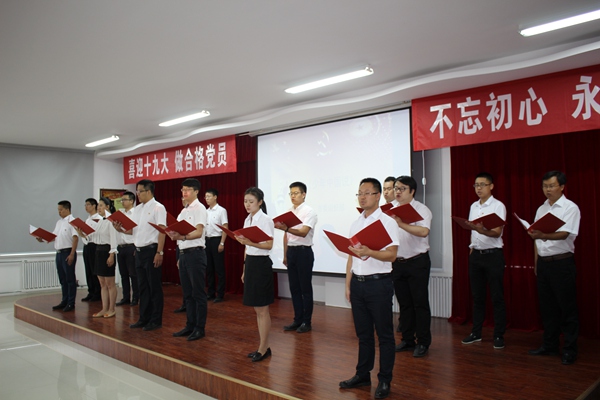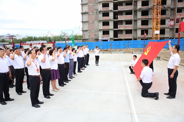 伴随着雄壮的国歌声,五星红旗冉冉升起。国旗下的宣讲和发声亮剑充满正气、饱含深情。面对鲜红的党旗,全体党员一起紧握右拳,精神饱满,用坚定有力的宣誓声向党和人民许下诺言。