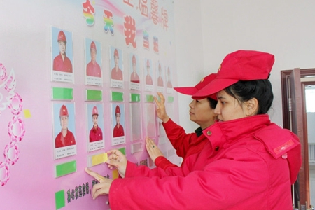 早班会散后,当班员工分别在“安全温馨牌”前插入了自己的照片信息及状态条。这是稀油处理站目视化管理的一大亮点,把员工当天的健康状况经由“色彩”展现出来,让无形“见形”。绿色表示身心状态良好,可以正常工作;黄色代表员工身体不适、心情波动,需要照顾;红色表示员工状态较差,工作有危险,需重点关注。因生病而贴了黄色状态条的维吾尔族员工阿曼古丽·玉素甫随即被安排到了大班协助填写完善各项资料。