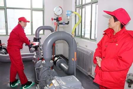 带领班员兵分两路完成数据核对、现场检查等工作后,交接班告一段落。随即,班长栾付萍针对当前天气变化及生产实际,开始了每日例行的班前安全讲话,稀油处理站新一天的安全生产工作在晨会中拉开序幕。