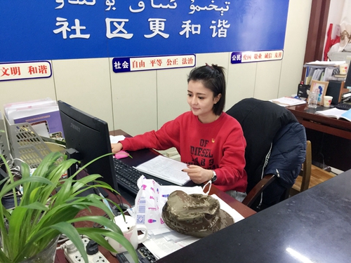 佐力胡马尔说,2017年10月,为了熟悉社区工作,她和单位同事们一起参与了联点社区的基层工作。
