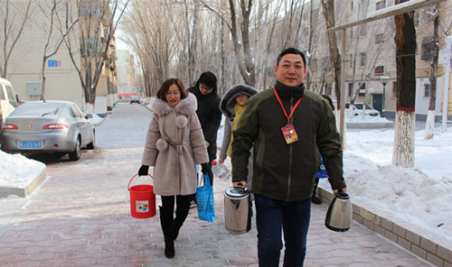 看着送到家中的一壶开水和一桶家用水,72岁的居民袁忠林握着郭建辉的手说道:“我这腿不听使唤了,冬天都不敢出门,停水后我也不敢出去找水,多亏了你们工作队和社区时刻关心着我。”