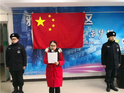 这个女孩叫王仁媛,是雅典娜社区的寒假返乡大学生。放假回到家,她主动向社区申请进行国旗下的宣讲。